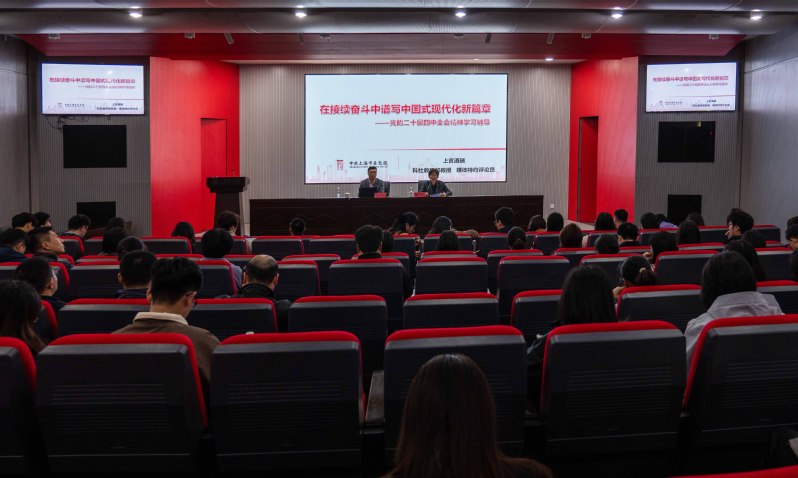 上官酒瑞作了题为“在接续奋斗中谱写中国式现代化新篇章”——党的二十届四中全会精神学习辅导讲座。从党的二十届四中全会在关键时期召开的重要会议、“十五五”时期的发展基础与方针原则、“十五五”时期的战略任务与重大举措、坚持知信行统一学习贯彻全会精神等四个方面,深入浅出地解读了党的二十届四中全会召开的历史方位、“十五五”规划的重要地位、经济社会发展指导方针的丰富内涵、全面贯彻的实践要求等。报告翔实,内容丰富,为我们进一步深刻领会和深入学习党的二十届四中全会精神打下了坚实的基础。上官教授还结合当前高校机关党的建设和业务工作的实际,强调要学思践悟党的二十届四中全会精神,提高政治站位和政治觉悟,把全会精神转化为谋划工作的正确思路,把自己、工作和责任摆进去,切实担当作为,做到见行见效。